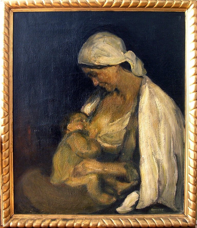 obraz od gemerského rodáka Júliusa Rudnaya zobrazuje dedinskú matku dojčiacu
