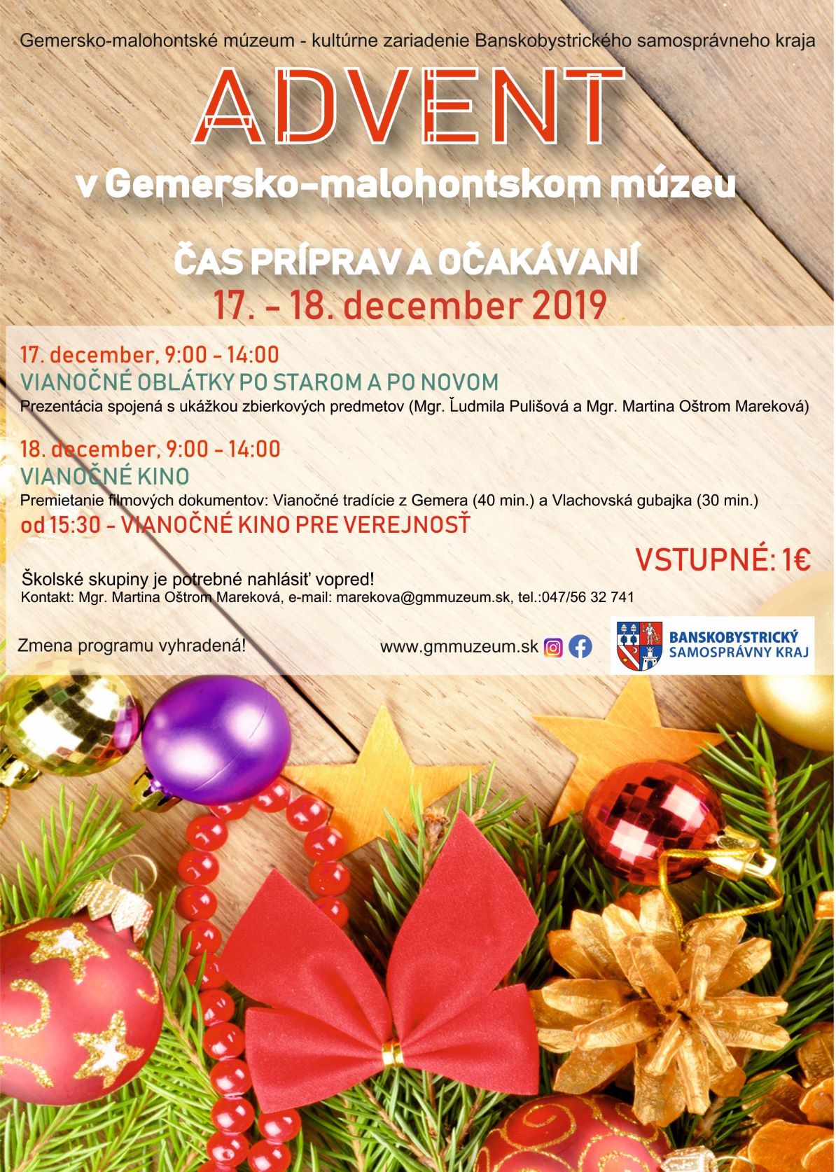 osoba: Martina Oštrom Mareková, marekova@gmmuzeum.sk, 047/5632741