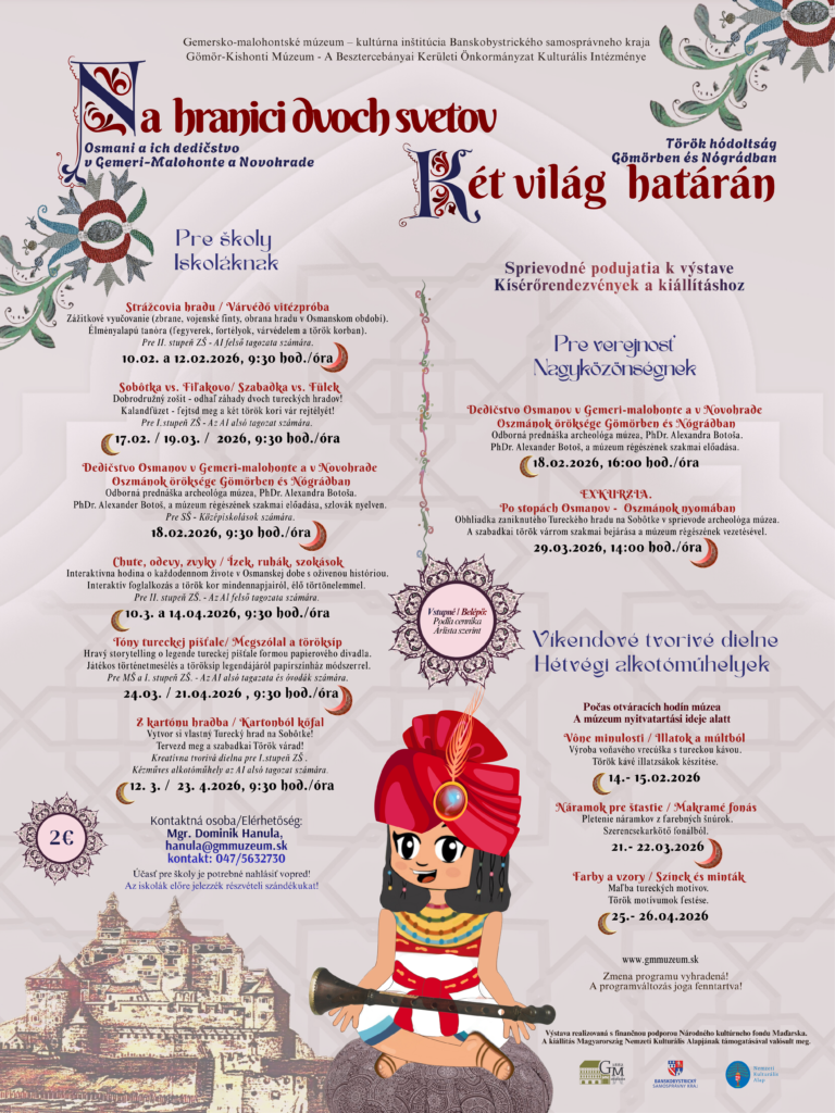 A Gömör-Kishonti Múzeum 2026. február 4. és május 10. között, a mohácsi csata (1526. augusztus 29.) 500. évfordulója alkalmából rendez kiállítást Két világ határán.  Az oszmánok és örökségük Gömör-Kishontban és Nógrádban. címmel.